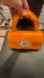 Stylish orange handbag featuring a sparkling jewel accent. Perfect for adding a pop of color to any outfit.