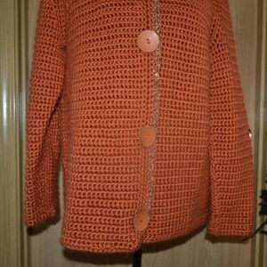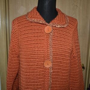 Orange Handmade Heavy Knit Chunky Cozy Cottage-core Granny Fall Cardigan
