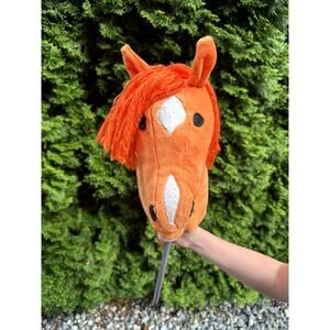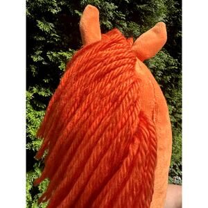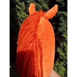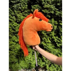 This handmade orange hobby horse is absolutely adorable! It's in great condition and comes from a smoke-free home. The stick is made of durable plastic, perfect for hours of imaginative play. Approximately A3 size, it's easy for little ones to handle and enjoy. Get ready for endless fun with this cute and unique toy!