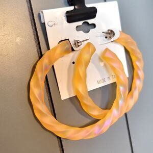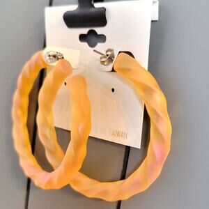 Orange Hoop Earring 2" Retro Bold Iridescent Y2K Festival Pierced 80's Statement