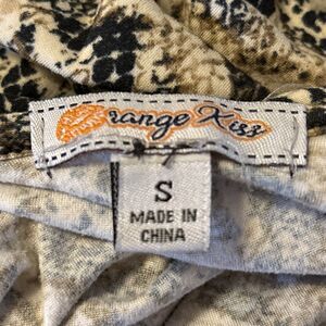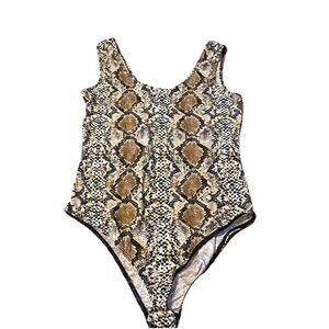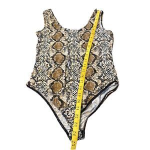 Orange Kiss Brand Tan Black Snake Print Scoop Neck Bodysuit Stretchy Size Small