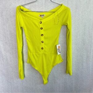 Orange Kiss bodysuit ribbed neon long sleeves small