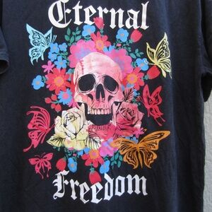 Orange Kiss t-shirt unisex M skull flowers colorful Halloween y2k streetwear comfy