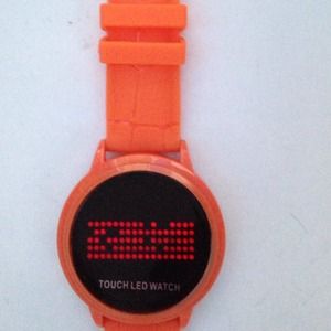 This round faced watch is touch screen and light weight. Time is displayed with LED digital lighting and easy to set.