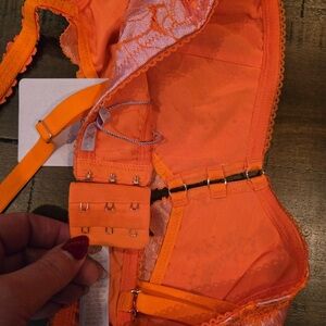 This vibrant orange lace bralette offers both style and comfort. Perfect for adding a pop of color to your intimates collection. New! Size L