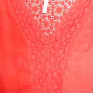 Pull over top very light and airy Beautiful detailed design.It has three buttons on the front of shirt. Very lovely with any kind of jeans or pants 19'sleeve length 21'aross bust full length 28'