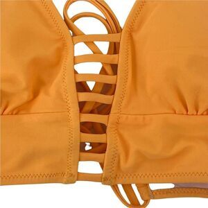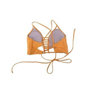 Orange Ladder Front Bikini Top Laced Back Womens Size Small Swimwear V Neck Swim