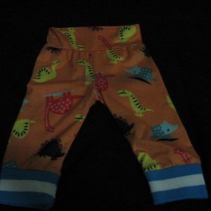 Adorable 3 piece set. Includes White Onesis that says "Little Brother ", Orange Dinosaur pants and matching cap.