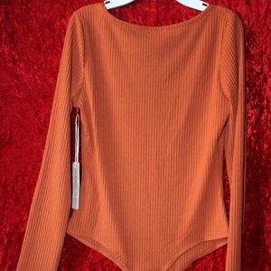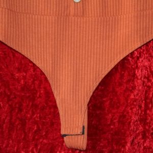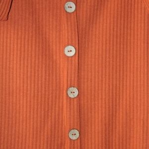 This Long Sleeved Body Suit has beautiful Cream/Tan buttons that compliment the Rich Orange Color!