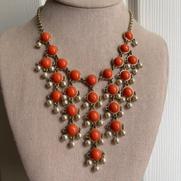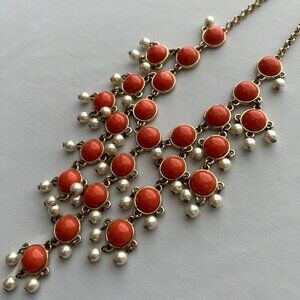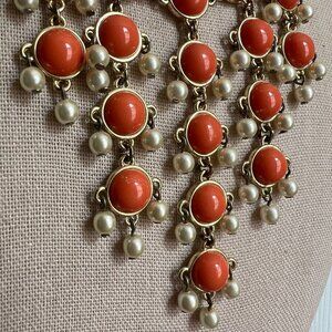 Orange Lucite Gold Tone Festoon Bib Style Dangle Costume Fashion Estate Necklace