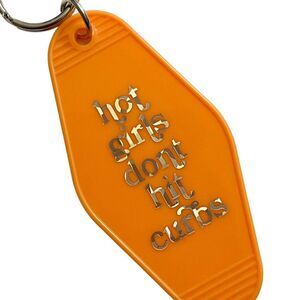 Orange Motel Room Keychain Holographic print says “hot girls don’t hit curbs”