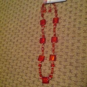 Orange & White Necklace and Earring Set. Necklace has magnetic clasp. Great for fall football games at UT - Go VOLS!