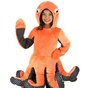 Orange Octopus Costume Kids Size M Tunic w Tentacles Hood Sea Creature HALLOWEEN