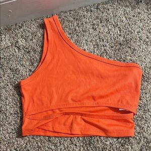 Elevate your style with this vibrant orange one-shoulder ribbed top. Perfect for a chic and modern look.