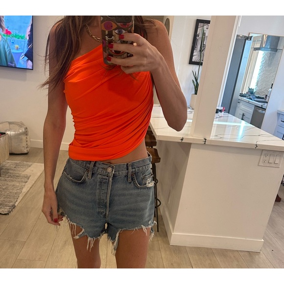 Orange One-Shoulder Top.