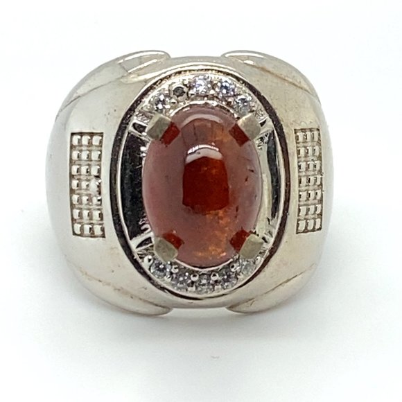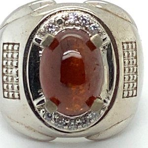 Orange Opal 4.02ct Platinum Finish Silver Ring 14g