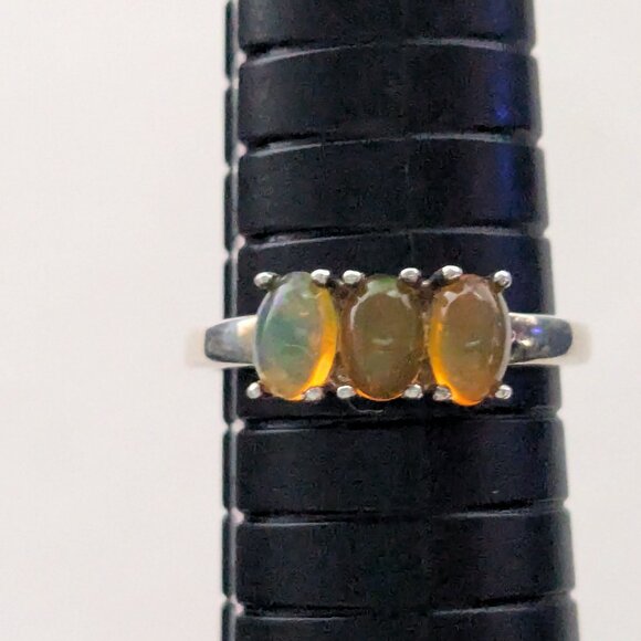 Orange Opal Cabochon 925 Sterling Silver Ring Size 8.5