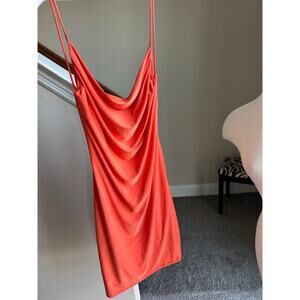 Orange slinky open low back dress. Size Medium. New with tags, NWT. Super stretchy, glossy looking material. Lined. Cutest open low back. Orange low back strappy dress