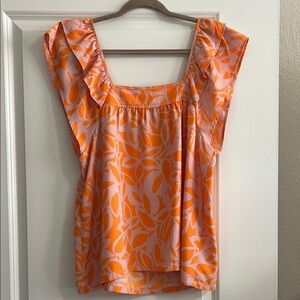 Brighten your wardrobe with this stylish orange patterned top. Perfect for any occasion.