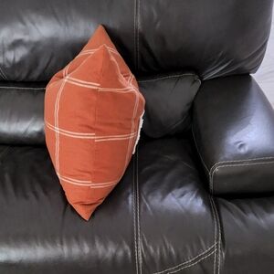 Add a warm touch to your home with this orange plaid throw pillow. Perfect for holiday decor, it features a charming 'Family' design.
