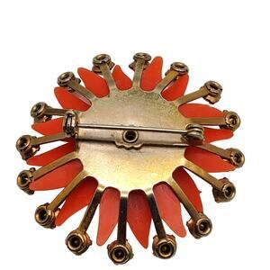 Orange Plastic Brooch Rhinestone Sunburst Pin Star Petal Flower Vintage 1960s
