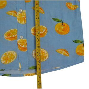 Orange Print Cotton Short Sleeve Button-Up Shirt Blue Background Boys Size 10.
