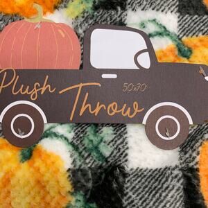 Orange Pumpkin Black White Buffalo Plaid Fall Farmhouse Autumn Harvest Blanket