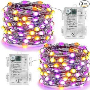Orange Purple Halloween Fairy Lights, 2-Pack 16.4FT 50LED Battery String Lights