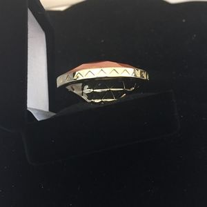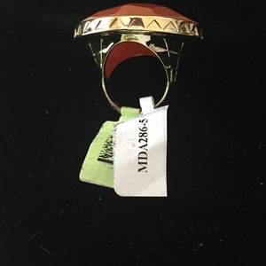 Authentic brand new Moda Di Pietra™ Tumbled And Faceted Orange Quartzite, 18k Yellow Gold Over Bronze Ring. Measures Approximately 1 3/8"l X 3/16"w. Not Sizeable.