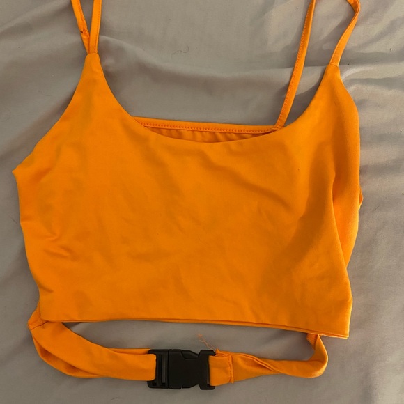 Worn once. Orange crop top with buckle. Perfect for a rave