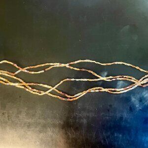 Natural Orange Red Yellow Brown Spessartitle squ bead 5 strand necklace W/ Stephen Dweck Leaf motif clip pin. Can be worn together or separately.