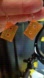 Unique earrings shaped like retro cassette tapes. Vibrant orange color adds a pop of style.