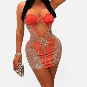 #sparklydress #rhinestonedress #orangemini #partyfit #nightoutfit
