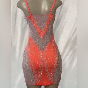#orangedress #rhinestonedress #partylook #nightoutstyle #sparklydress