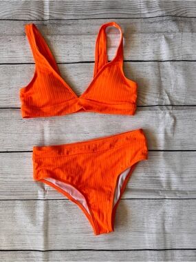 Orange Ribbed Bikini Set