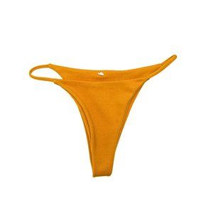 Description: Elevate your beach attire with these vibrant and uniquely tumeric-dyed orange ribbed cheeky bikini bottoms. Crafted with a focus on quality, these bikini bottoms offer both style and comfort. The cheeky cut adds a touch of allure to your beach look, making it a perfect choice for sun-soaked days by the water. These bikini bottoms have never been worn, ensuring they are in pristine condition for your enjoyment.