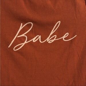 Stylish orange ribbed crop top featuring a chic 'Babe' print. Perfect for casual outings.