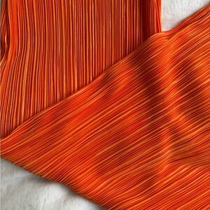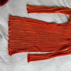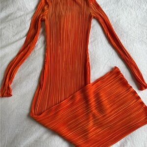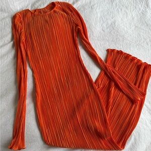 Vibrant orange plisse / pleated / ribbed long sleeve dress perfect for any occasion.