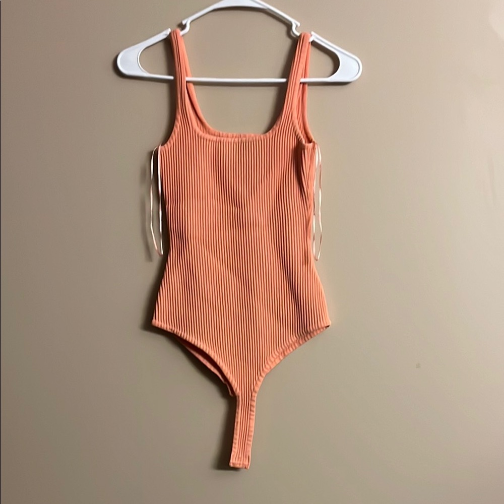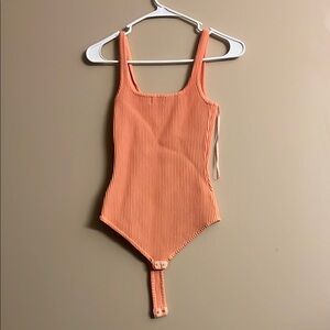 Bright and stylish orange ribbed one piece for kids. Perfect for any occasion.