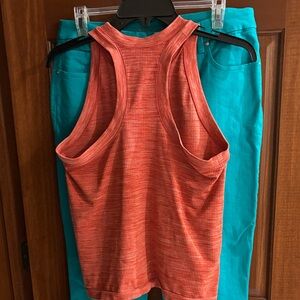 Soft ribbed tank in a warm orange hue. Sleeveless cut with a classic round neckline. Lightweight and versatile for layering or alone. Tags removed but think this was from Target.