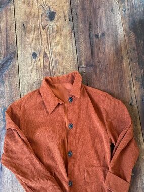 Orange Ribbed Shacked Button Down