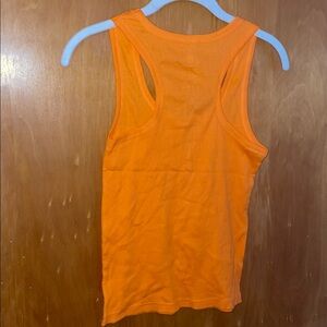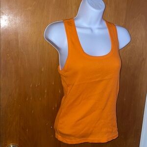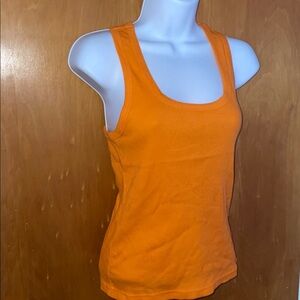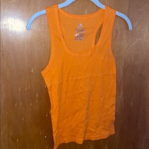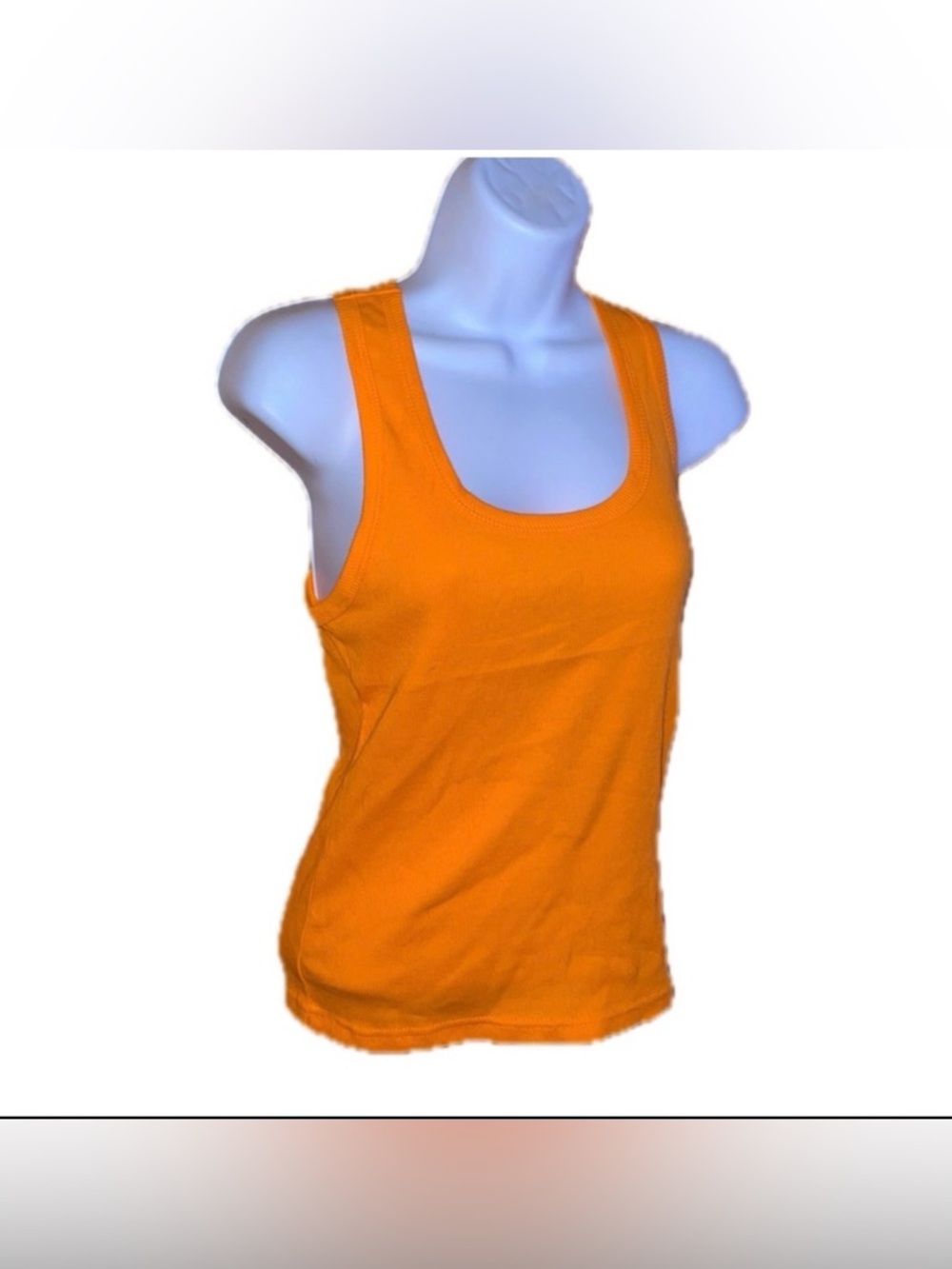 In excellent condition! Brand new without tags. Never worn before. No stains, tears, rips, holes, pilling, shrinkage, or discoloration. 100% cotton with a regular fit. A scoop neck tank top with a ribbed knit style. A solid, bright, orange tank top. Perfect for layering in all seasons. Perfect for spring, summer, workout, lounge, athleisure, the beach, casual days and more! Pairs nicely with shorts, leggings, yoga pants, jeans, and more. Also available in bright purple and bright red in my closet in the same size and style. Bundles of any 2 or more items are 30% off in my closet. Comment with any questions. Mix or match the categories. I am open to offers.