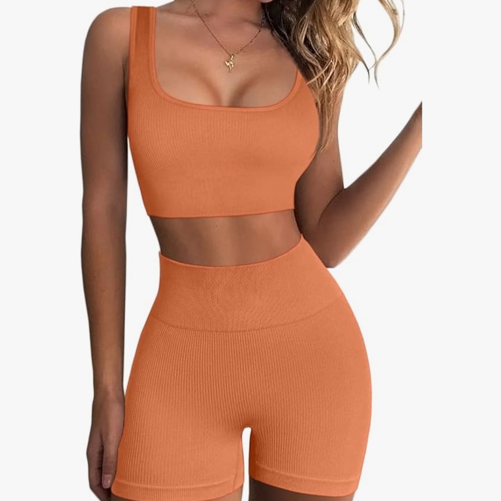 Orange Ribbed Two-Piece workout Set