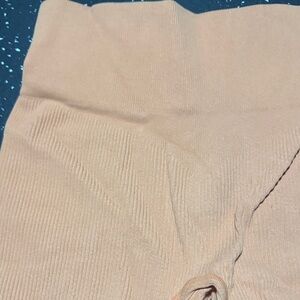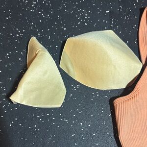 Stylish orange ribbed workout set. Includes a crop top and high-waisted shorts. Perfect for gym sessions. Last photo is the original Amazon picture. Top is discolored. Only wore once but then got stained/changed color in the wash.