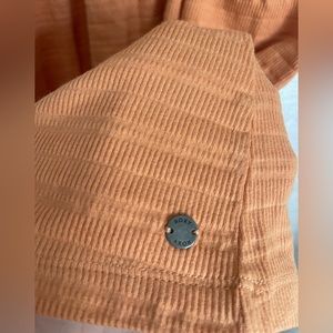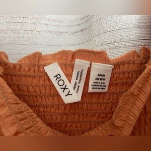 Smocked orange dress by Roxy. Smocked straps, and chest. Lightweight but not see through. I love this style of causal dress but decided it was ultimately too short for me (5’9)