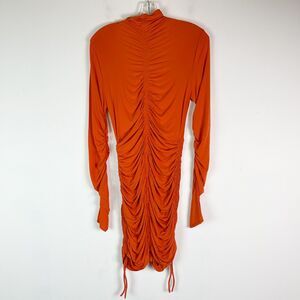 Stand out in this vibrant orange ruched dress. Perfect for any occasion, this dress features long sleeves and a flattering fit. Elevate your wardrobe with this stylish piece.