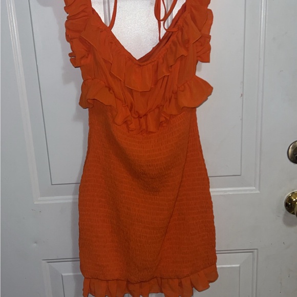 Brighten your wardrobe with this stunning orange ruffle mini dress. Perfect for any occasion, it offers a flattering fit and eye-catching design.