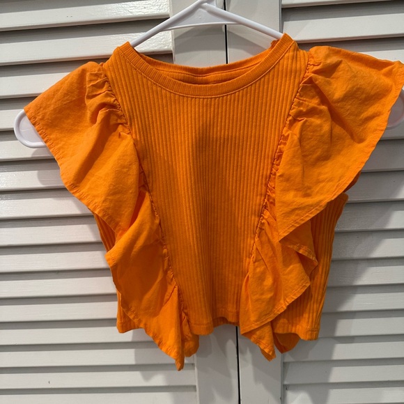 Brighten your wardrobe with this vibrant Zara Kids orange top. Featuring stylish ruffle sleeves, it's perfect for any occasion.