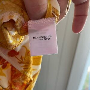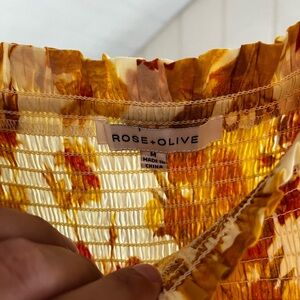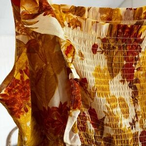 Rose+Olive floral/leaf smocked tank top fitted at the top and flowy in the midsection. Tagged as a medium but I wear a large and it’s big on me so I put XL on listing. Measurements in photo.