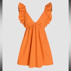 Cider Ruffle Hem V-Neck Knotted Mini Dress in Orange. Super cute, worn only once.